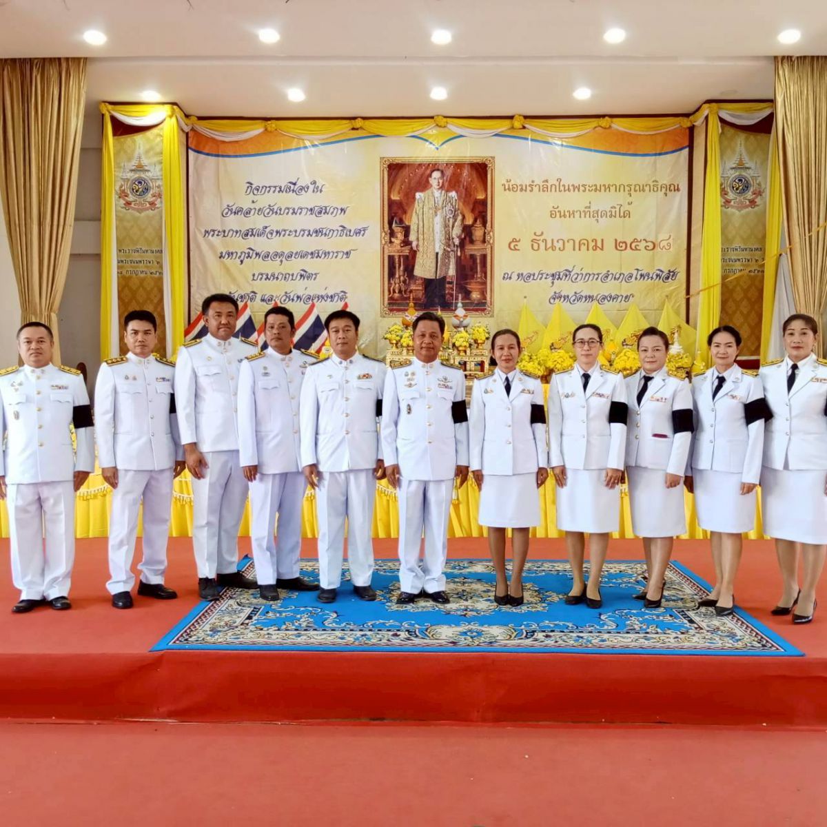 วันที่ 5 ธันวาคม 2567 นำโดยท่านปลัดใหม่ ท่านรองปลัด หัวหน้าสำนักปลัด พร้อมด้วยหัวหน้าส่วนพนักงานส่วนท้องถิ่น เข้าร่วมกิจกรรมวันที่ 5 ธค 67 เนื่องในวันคล้ายวันพระราชสมภพ พระบาทสมเด็จพระบรมชนกาธิเบศร มหาภูมิพลอดุลยเดชมหาราช บรมนาถบพิตร