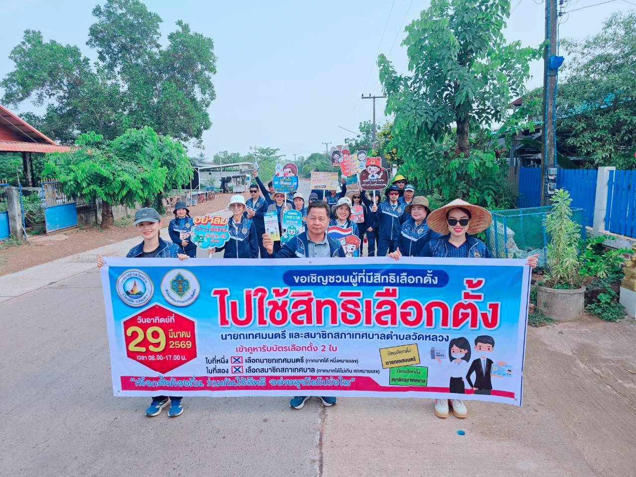 ท่านปลัดใหม่ จงสีหา ปลัดเทศบาลตำบลวัดหลวง โครงการเดินรณนรงค์แนะนำให้ประชนภายในตำบลวัดหลวงออกไปใช้สิทธเลือกตั้งในวันที่ 29 มีนาคม 2569